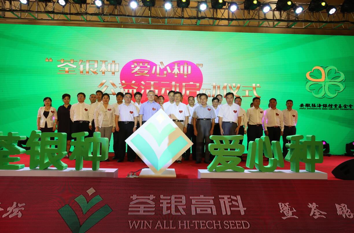 農(nóng)業(yè)部種子管理局張延秋局長(zhǎng)、中國(guó)種子協(xié)會(huì)蔣協(xié)新副會(huì)長(zhǎng)、中科院韓斌院士、安徽省農(nóng)委朱永東副主任、基金會(huì)張海銀理事長(zhǎng)、荃銀高科張琴董事長(zhǎng),以及荃銀高科經(jīng)營(yíng)班子成員、所屬控股子(分)公司負(fù)責(zé)人共同見證并將愛心種子放入愛心池,“荃銀種、愛心種”的公益活動(dòng)正式啟動(dòng)。