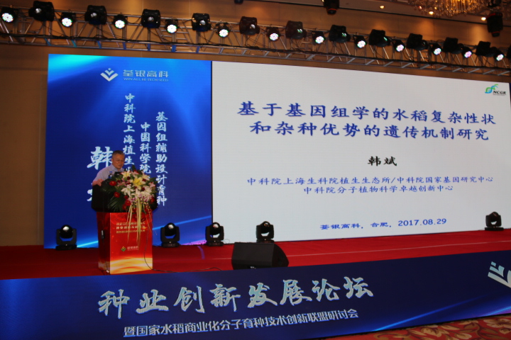 創(chuàng)新驅(qū)動(dòng),助力發(fā)展。2 9日下午,荃銀高科舉行種業(yè)創(chuàng)新發(fā)展論壇暨國(guó)家水稻商業(yè)化分子育種技術(shù)創(chuàng)新聯(lián)盟研討會(huì),中國(guó)科學(xué)院院士、中科院上海植生生態(tài)所所長(zhǎng)韓斌,北京市農(nóng)林科學(xué)院玉米研究中心主任趙久然分別就“基因組輔助設(shè)計(jì)育種”和“玉米科研及產(chǎn)業(yè)發(fā)展方向”作了報(bào)告。荃銀高科副總經(jīng)理張從合進(jìn)行了“荃銀高科15周年科研成果及產(chǎn)業(yè)發(fā)展”情況匯報(bào)。