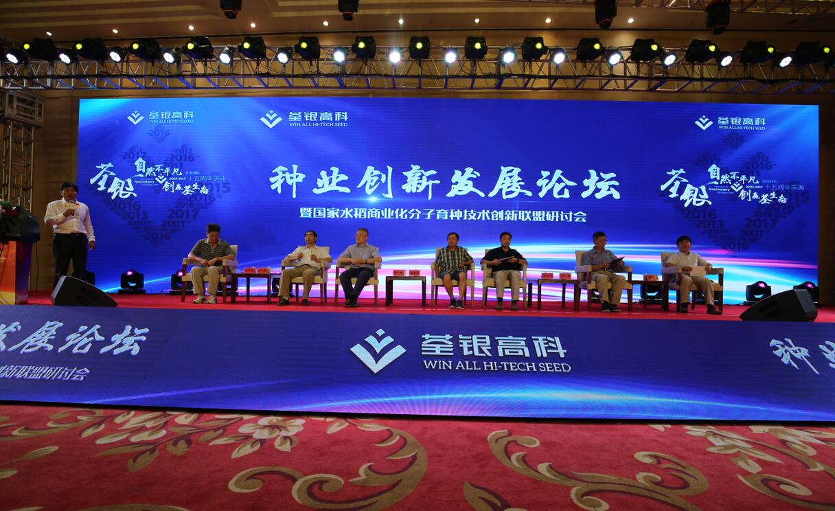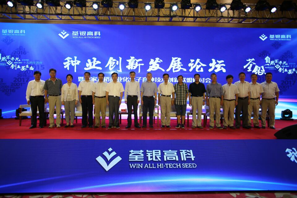 十五載風(fēng)雨兼程,十五載春華秋實(shí)!2017年8月29日,科企合作戰(zhàn)略簽約儀式·種業(yè)創(chuàng)新發(fā)展論壇暨荃銀高科成立15周年慶典大會(huì)在合肥隆重舉行。農(nóng)業(yè)部種子局局長(zhǎng)張延秋,農(nóng)業(yè)部科教司司長(zhǎng)廖西元,中國(guó)科學(xué)院院士、國(guó)家基因研究中心主任、上海植生生態(tài)所所長(zhǎng)韓斌,中國(guó)種子協(xié)會(huì)副會(huì)長(zhǎng)兼秘書長(zhǎng)蔣協(xié)新,安徽省科技廳廳長(zhǎng)宛曉春,安徽省農(nóng)業(yè)委員會(huì)副主任周世其、朱永東,“中國(guó)種業(yè)十大功勛人物”、荃銀高科創(chuàng)始人、安徽張海銀基金會(huì)理事長(zhǎng)張海銀先生,以及來自農(nóng)業(yè)部、中國(guó)種子協(xié)會(huì)和省、市有關(guān)部門的領(lǐng)導(dǎo)、專家、嘉賓,國(guó)家水稻商業(yè)化分子育種技術(shù)創(chuàng)新聯(lián)盟的科學(xué)家,戰(zhàn)略合作簽協(xié)單位代表,種業(yè)界同仁,還有來自印度尼西亞、孟加拉、巴基斯坦、越南等國(guó)家的20多位外賓朋友,計(jì)500多人參加了此次活動(dòng)。