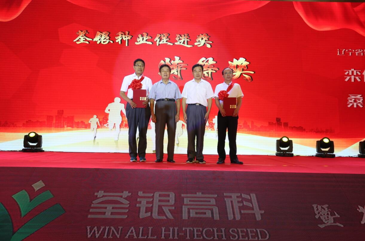 (中國(guó)種子協(xié)會(huì)副會(huì)長(zhǎng)兼秘書長(zhǎng)蔣協(xié)新與安徽張海銀種業(yè)基金會(huì)理事長(zhǎng)張海銀為“荃銀種業(yè)促進(jìn)獎(jiǎng)”特等獎(jiǎng)獲得者鐵嶺市農(nóng)科院欒化泉研究員、桑立君研究員頒獎(jiǎng))