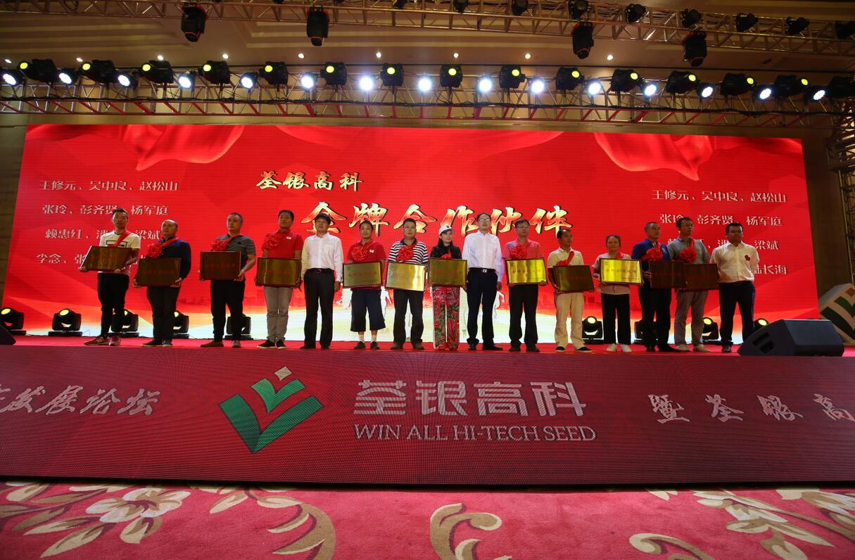同舟共濟(jì)十五載,攜手同行創(chuàng)未來。會(huì)上,還頒發(fā)了基金會(huì)“荃銀種業(yè)促進(jìn)獎(jiǎng)”專項(xiàng)獎(jiǎng)、“荃銀高科金牌合作伙伴”、“荃銀高科科研團(tuán)隊(duì)突出貢獻(xiàn)獎(jiǎng)”、“荃銀高科忠誠(chéng)員工獎(jiǎng)”等,獎(jiǎng)勵(lì)在農(nóng)作物種子科研、生產(chǎn)、推廣、管理和服務(wù)等方面開拓創(chuàng)新做出突出貢獻(xiàn)的優(yōu)秀種業(yè)工作者,以及支持荃銀高科發(fā)展的合作伙伴、優(yōu)秀團(tuán)隊(duì)及忠誠(chéng)員工。