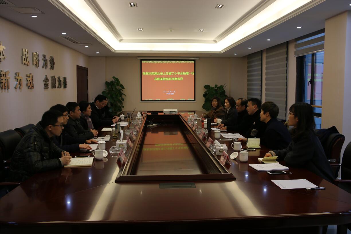 2018年1月19日,湖北壟上傳媒集團丁小平總經理一行蒞臨荃銀高科參觀考察,公司董事長、總經理張琴女士熱情接待了丁小平先生一行,并參加座談交流。