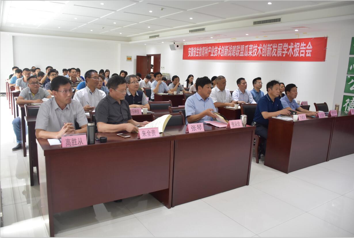 ??? 24日下午,安徽省生物育種產業技術創新戰略聯盟瓜菜技術創新發展學術報告會召開,合肥市科技局農村與社會發展科技處處長方建東,安徽省蔬菜產業技術體系首席專家、國家西甜瓜產業技術體系合肥綜合試驗站站長張其安研究員,豐樂種業、徽大農業等安徽省生物育種產業技術創新戰略聯盟成員及員工70余人參加了報告會。