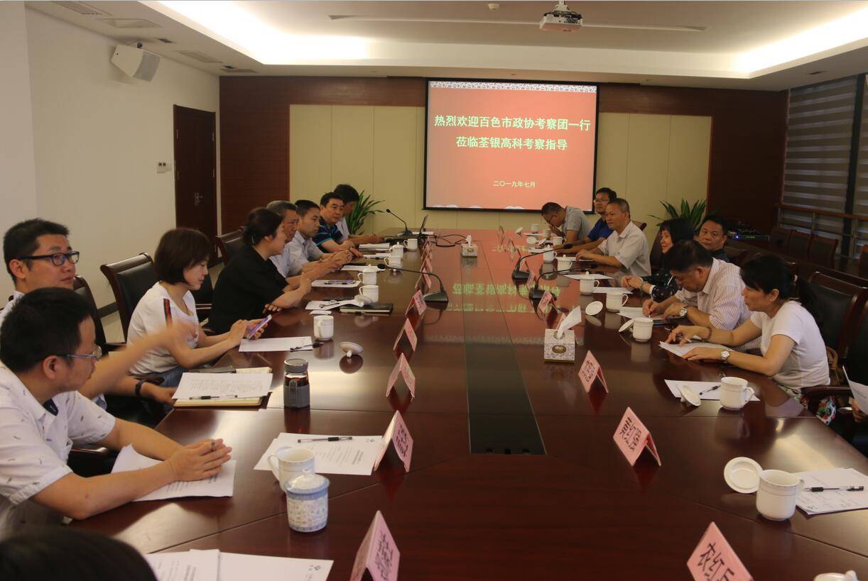 ??? 在調研考察座談會上,荃銀高科總經理張琴女士對百色市政協考察團一行到來表示熱烈歡迎,副總經理張從合先生就公司發展和科技創新情況等進行了匯報。考察團一行聽取匯報后,對荃銀高科取得的成績及創新做法給予肯定,并希望雙方兩地能夠進一步加強合作,實現共同發展。