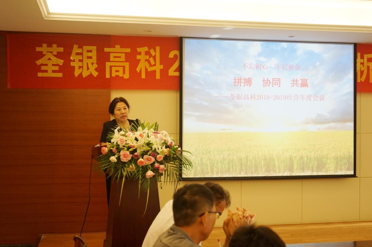 ??? 副董事長、總經理張琴女士作重要講話。當前荃銀進入全新時代,發展到今天凝聚著全體荃銀人的智慧和汗水,面對當前新的種業形勢,針對荃銀品種及經營情況,她要求各單位認真剖析市場,有的放矢,精準突破,協同作戰。作為中化農業SAS聯盟的一員,荃銀高科迎來了前所未有的發展機遇,而打造有戰斗力、團結協作的團隊是實現戰略目標的關鍵。張琴總經理指出,一支具有戰斗力的團隊要有目標、有使命、有擔當、有激情,迎難而上,敢于嘗試,善于創新。最后她強調,站在新的歷史起點上,我們要不忘初心,牢記使命,頑強拼搏、協同作戰、共創共贏!
