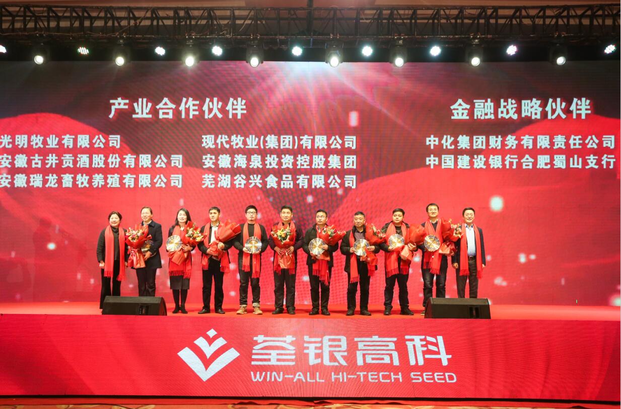 ? ? 創(chuàng)新合作,共贏發(fā)展。會上進行了荃銀高科產(chǎn)業(yè)合作伙伴、金融戰(zhàn)略伙伴頒獎儀式。近年來,荃銀高科積極開展農(nóng)業(yè)生產(chǎn)社會化服務探索,不斷加強與產(chǎn)業(yè)伙伴、金融公司合作,構建“品種+品牌+資本”戰(zhàn)略發(fā)展之路,打造產(chǎn)業(yè)鏈,形成閉環(huán),創(chuàng)新發(fā)展模式,為廣大農(nóng)戶提供從種到收一條龍服務,推進一二三產(chǎn)業(yè)融合,為現(xiàn)代農(nóng)業(yè)提供整體解決方案。