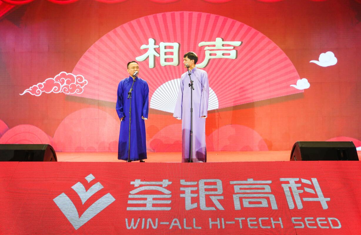 ? ? 聯(lián)歡會以喜慶祥和的歌舞表演《在希望的田野上》拉開序幕,科技公司的《街武》,將武術和街舞結合,剛柔并濟,十分炫酷;玉米公司的相聲《套牌》,道盡了一線種子銷售人員的不易;小品《西游記之女兒國2》詼諧幽默,令人捧腹大笑;詩朗誦《我愛祖國,我愛荃銀》殷情并茂,音詩畫《我和我的祖國》大氣恢弘,京歌《我是中國人》激情澎湃,荃銀人用自己的方式歌頌祖國,祝福荃銀。期間,中化農(nóng)業(yè)黨群工作部姚雁主任傾情獻唱《我把太陽迎進祖國》以及黃梅戲選段,獲得掌聲陣陣。整場晚會形式多樣,精彩紛呈,大家載歌載舞,盡顯風采魅力,現(xiàn)場還有互動抽獎,獎品豐厚,引得喝彩不斷。今年是荃銀高科上市十周年,加入中化農(nóng)業(yè)一周年,公司經(jīng)營班子成員及子(分)公司領導在張琴總經(jīng)理帶領下齊聲高唱《今天是你的生日》,為祖國、為荃銀送上由衷的祝福。晚會在高亢的歌聲中圓滿落下帷幕。